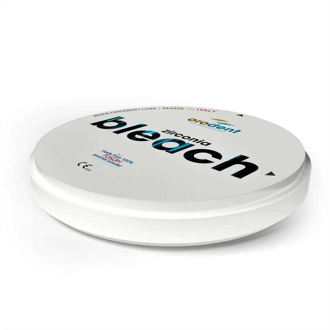 Zircone Bleach, avec son rendement blanc étincelant, a une grande résistance à la flexion et est adaptée à tous les travaux, des couronnes simples aux grands bridges jusqu’à 12 unités.