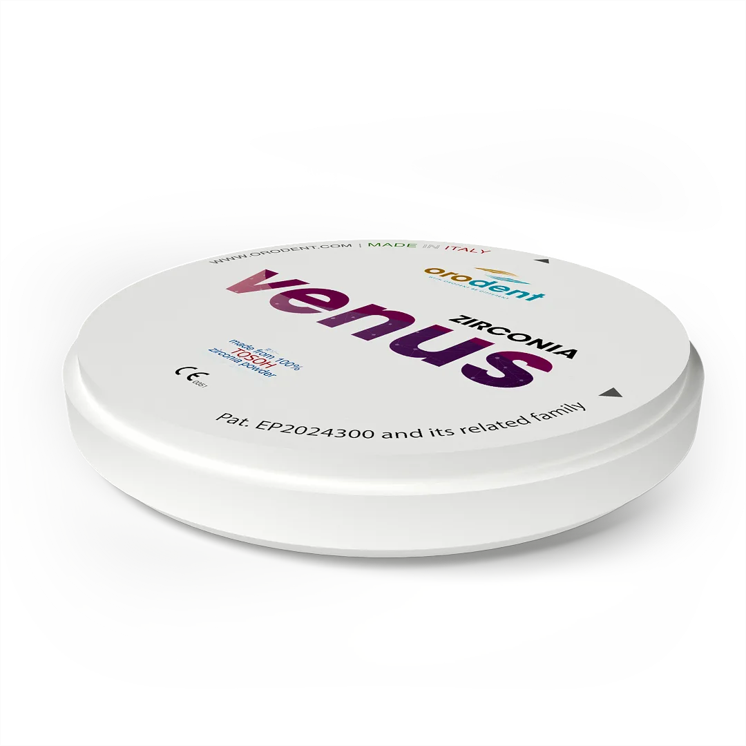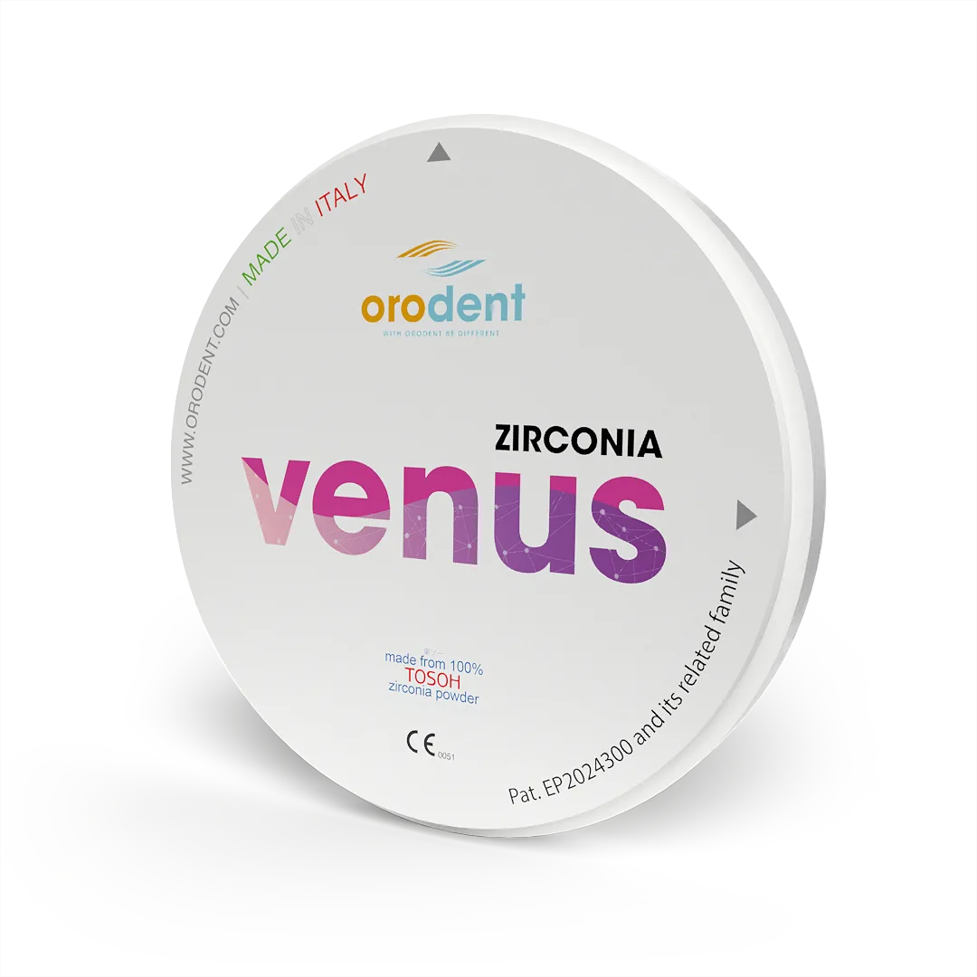 La zirconia Venus, realizzata con polveri TOSOH, rappresenta l’ultima generazione dei dischi multistrato Orodent. Grazie alla massima traslucenza (49%), Venus è il prodotto ideale per la realizzazione di corone, ponti ridotti e intarsi.